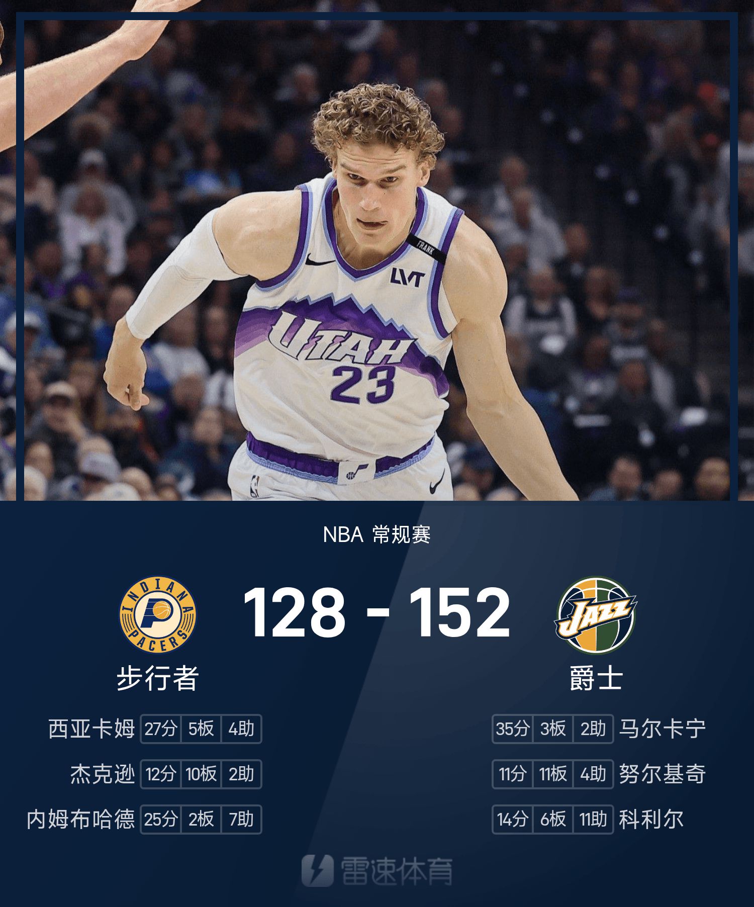 Марканен набрал рекордные для игры 35 очков, 3 подбора и 2 передачи, что привело «Джаз» к победе.