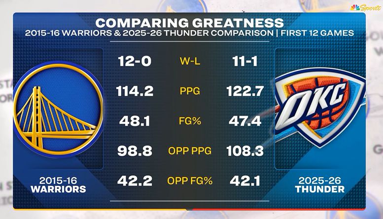 После игры американские телеканалы сравнили статистику первых 12 игр «Тандер» этого сезона и «Уорриорз» 2015–16:
