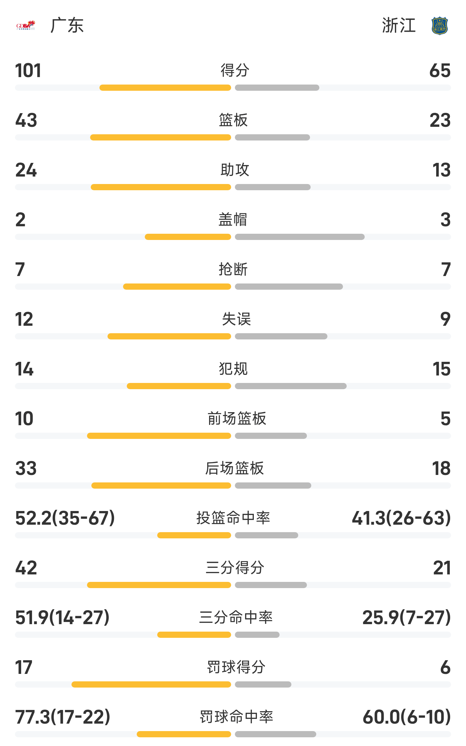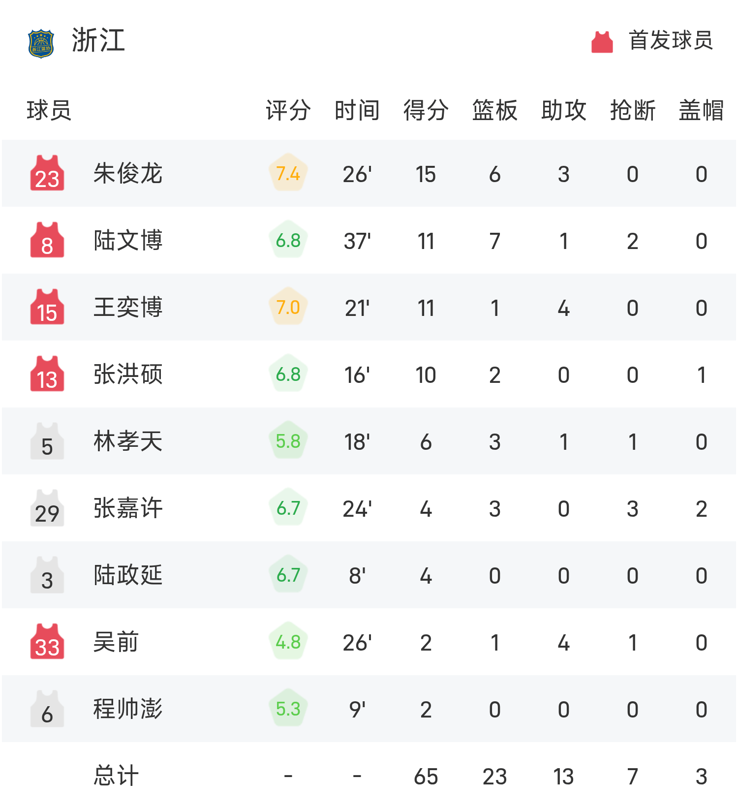 В конце игры Чжэцзян проиграл Гуандуну со счетом 65–101.