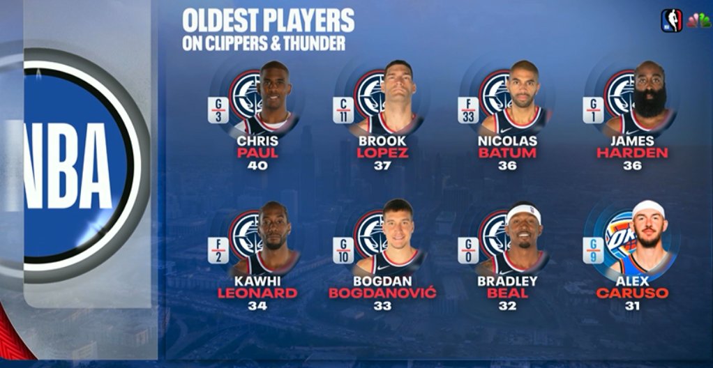 Телеканал, транслирующий эту игру, сравнил возраст игроков «Тандер» и «Клипперс». Все семь самых возрастных игроков обеих команд играют в «Клипперс». Карузо — самый старший в Громе, но ему всего 31 год.