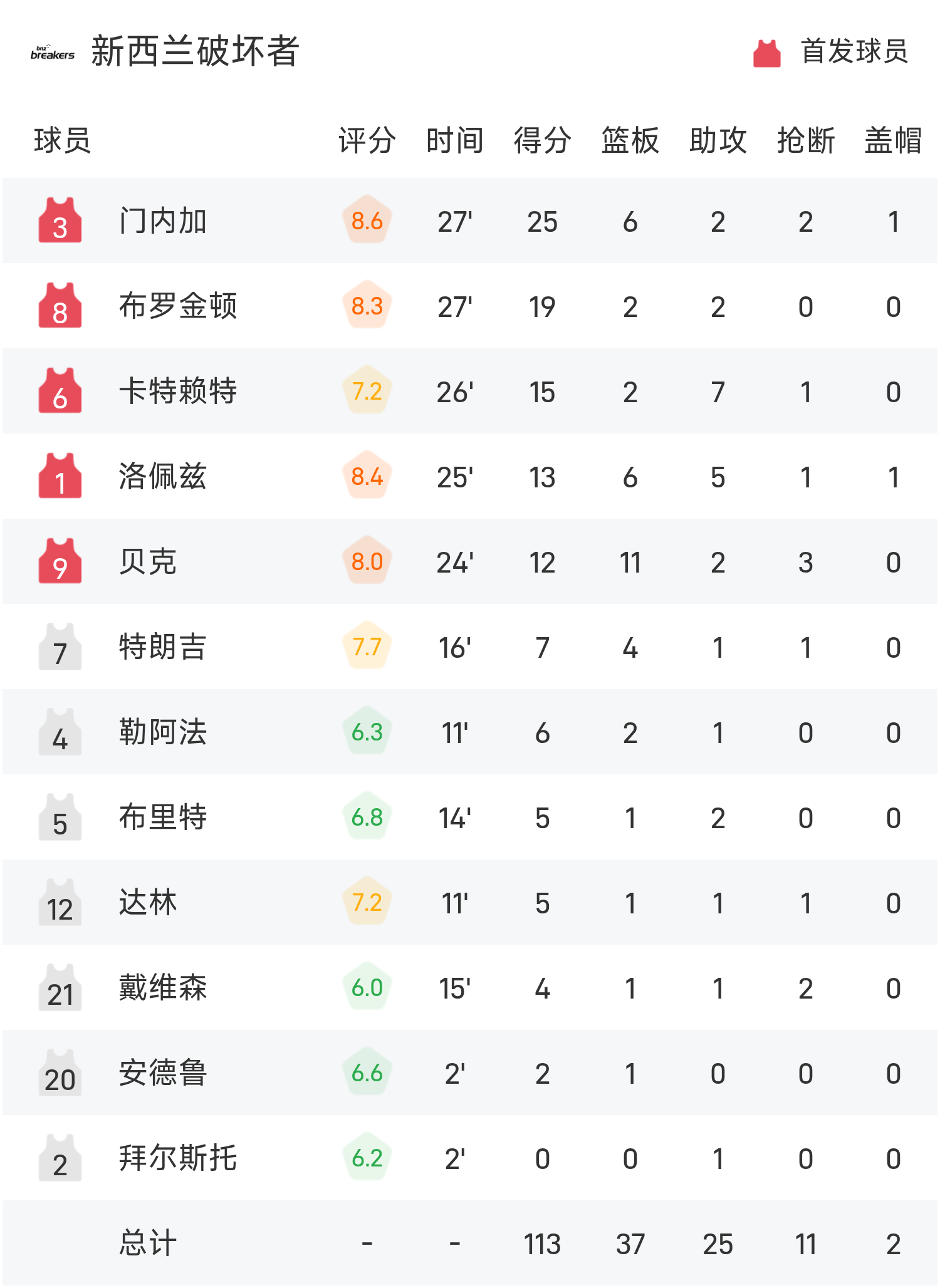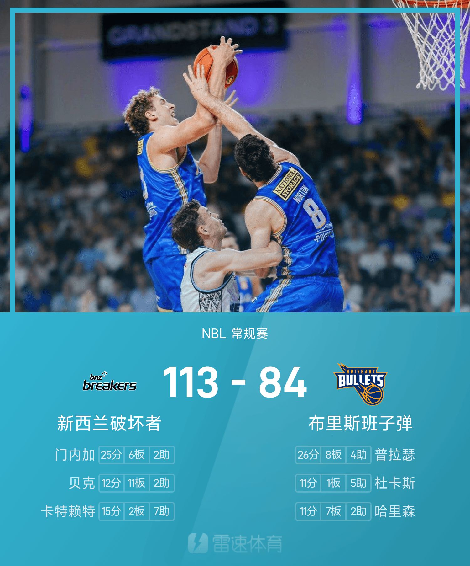 Отчет о битве НБЛ: Новозеландские Разрушители, набрав 25 очков и 6 подборов, обыграли Брисбен Буллетс со счетом 113-84.