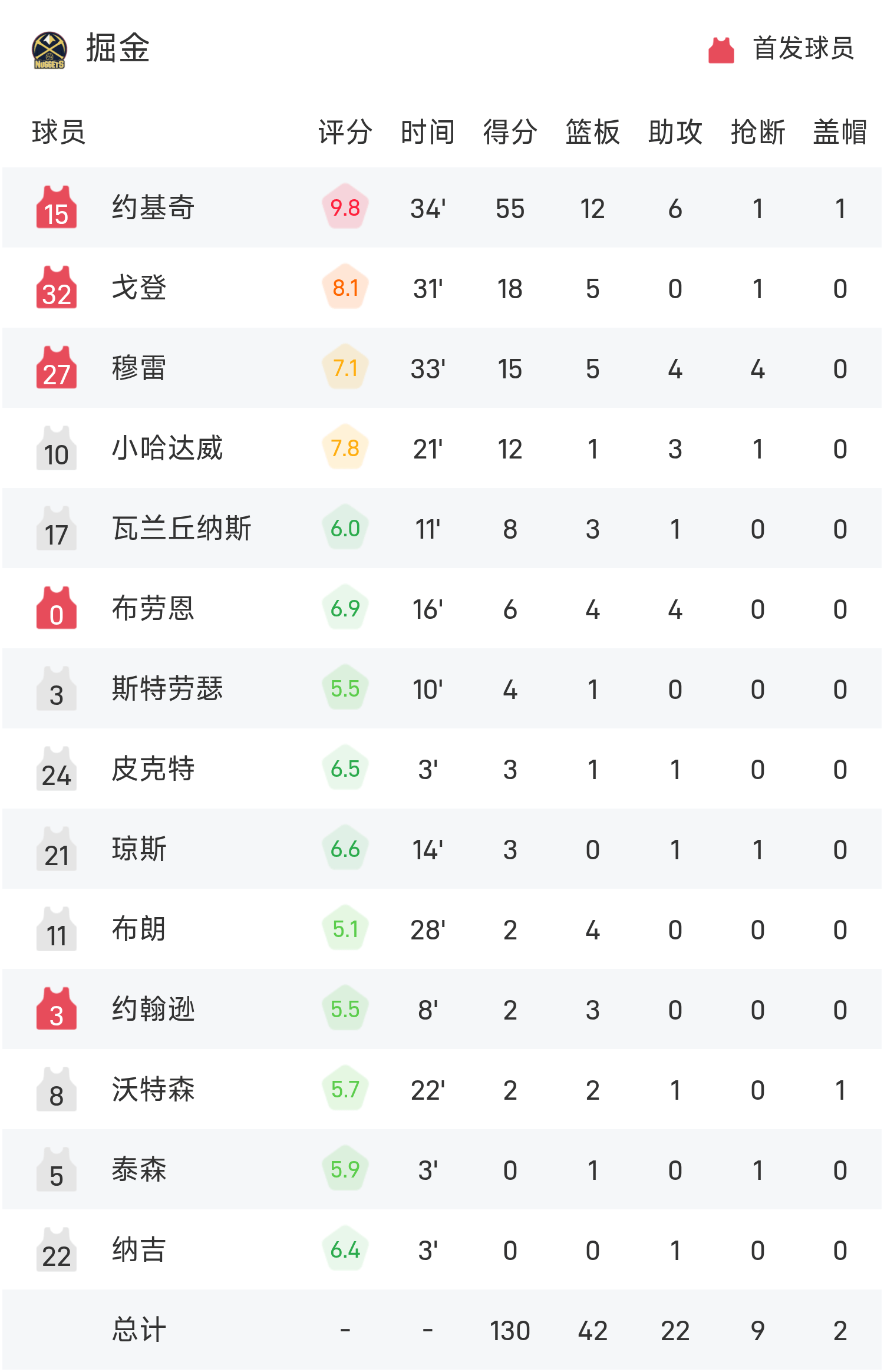 Йокич набрал рекордные для игры 55 очков, 12 подборов и 6 передач, что привело «Наггетс» к победе.