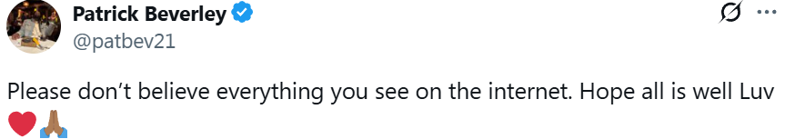 В ответ Беверли обновила новость и написала: «Пожалуйста, не верьте всему, что видите в Интернете. Надеюсь, все в порядке, и я люблю вас».