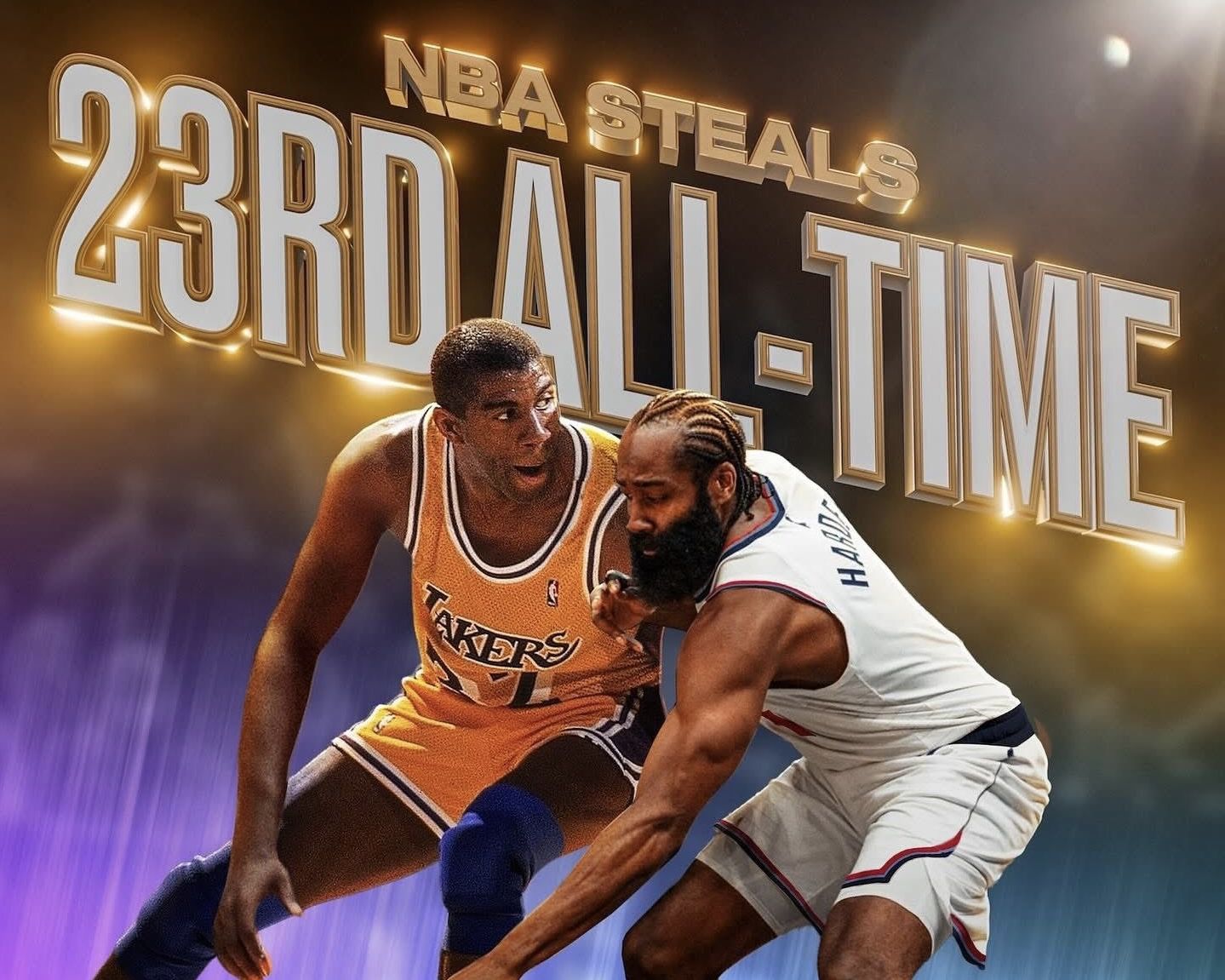 За пределами Мэджика Джонсона! Общее количество перехватов Хардена достигло 23-го места в истории