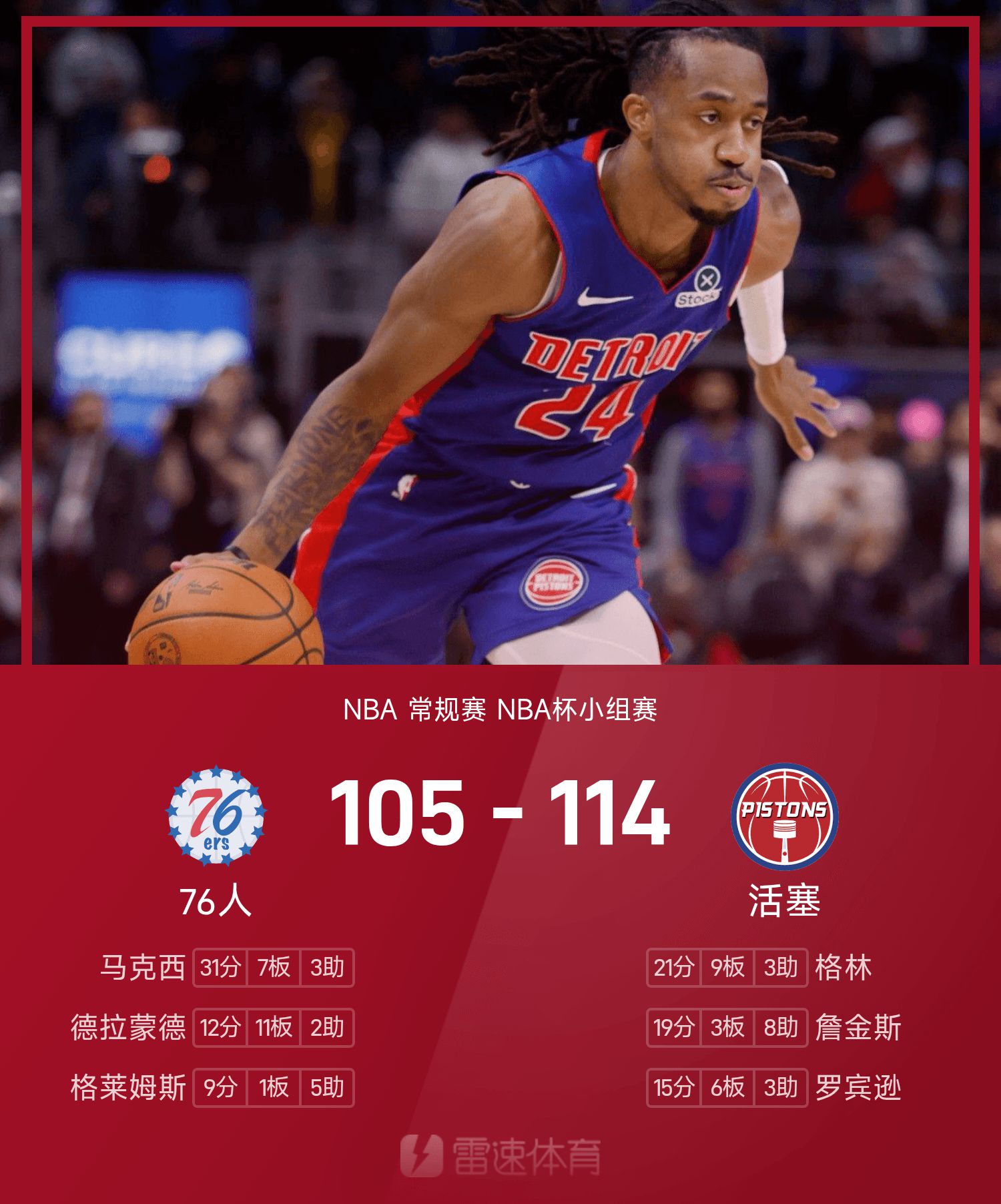 С 5 из 8 трехочковых Дженкинс привел «Пистонс» без Каннингема к победе над 76ers с 19 очками, 3 подборами и 8 передач. Макси набрал 31 очко, 7 подборов и 3 передачи.