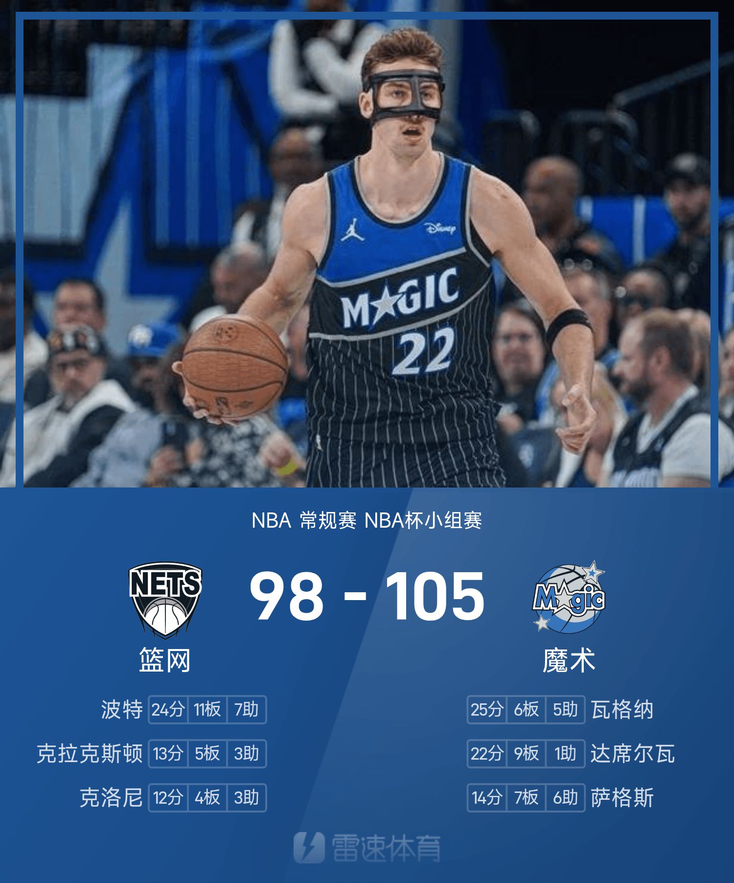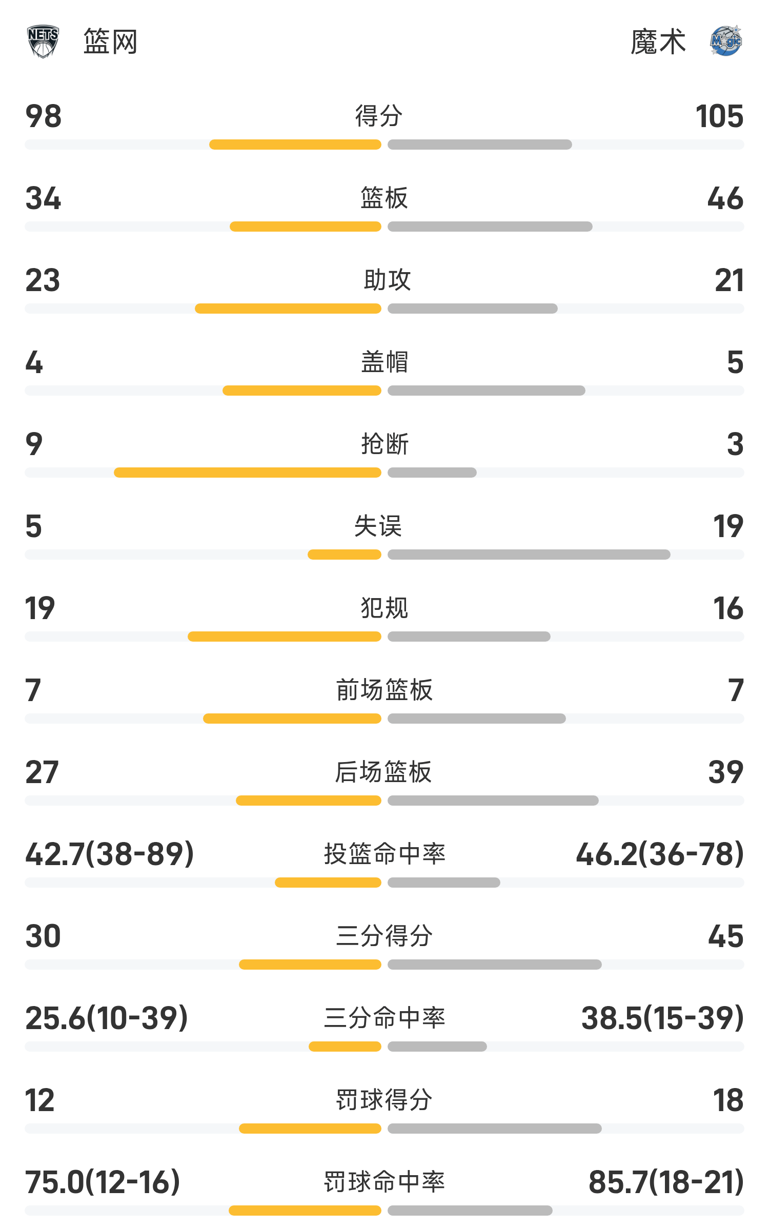 В конце игры «Мэджик» победили «Нетс» со счетом 105–98.