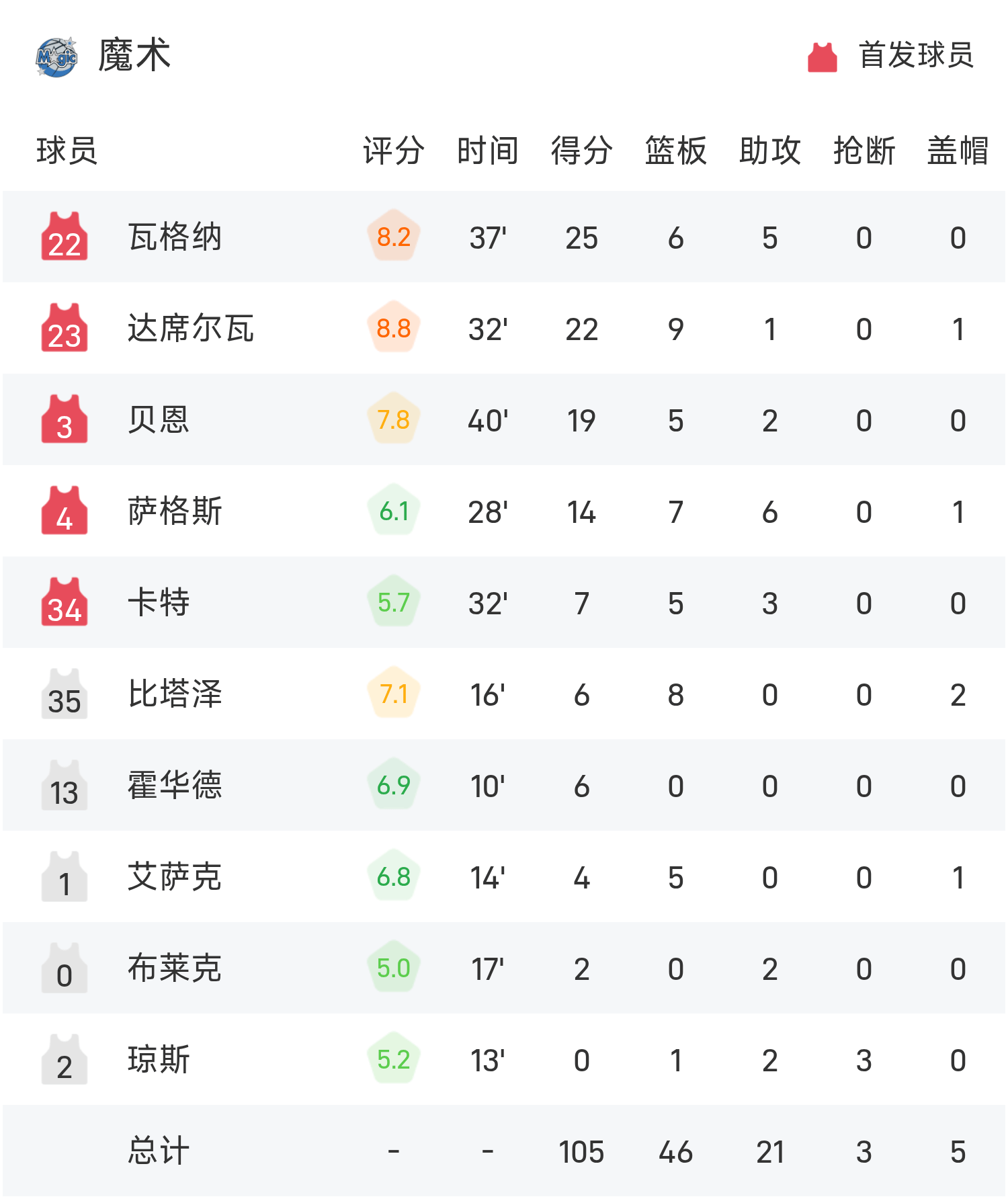 Вагнер набрал рекордные для игры 25 очков, 6 подборов и 5 передач, что привело «Мэджик» к победе.