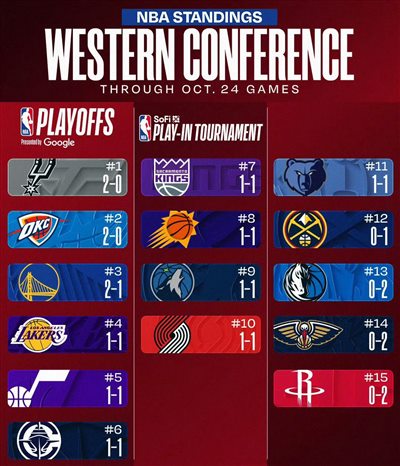 В настоящее время, после первых двух игр нового сезона, «Рокетс», «Маверикс» и «Пеликанс» сложно победить, и они занимают последнее место в Западной конференции, в то время как «Шпоры» и действующий чемпион Тандер лидируют в Западной конференции с рекордом в 2 победы и 0 поражений.