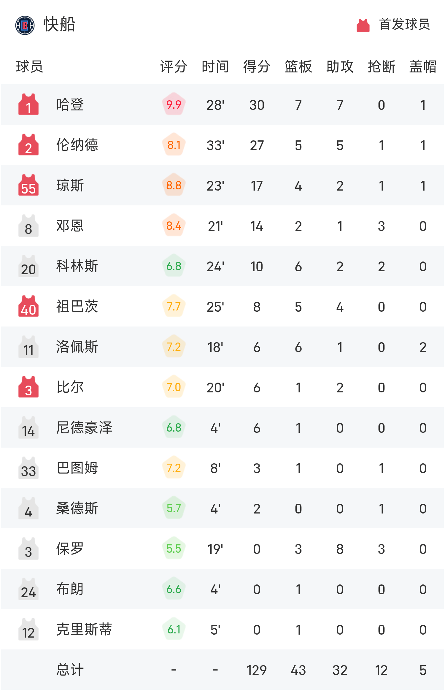 6686 Спорт Новости от 25 октября В регулярном сезоне НБА 25/26 «Клипперс» встретились с «Санз». В конце игры «Клипперс» победили «Санз» со счетом 129–102. Харден набрал рекордные для игры 30 очков, 7 подборов и 7 передач, что привело «Клипперс» к победе.