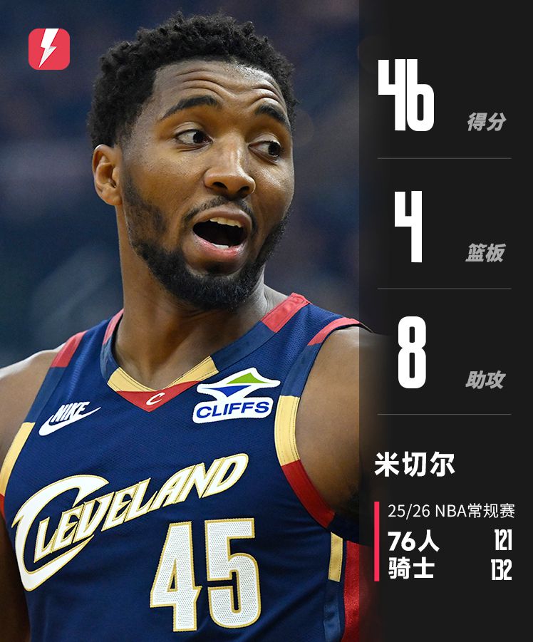 Конкурентоспособное государство горячо! Звезда «Кавальерс» Митчелл набрал 46 очков и 8 передач, что является рекордом сезона!