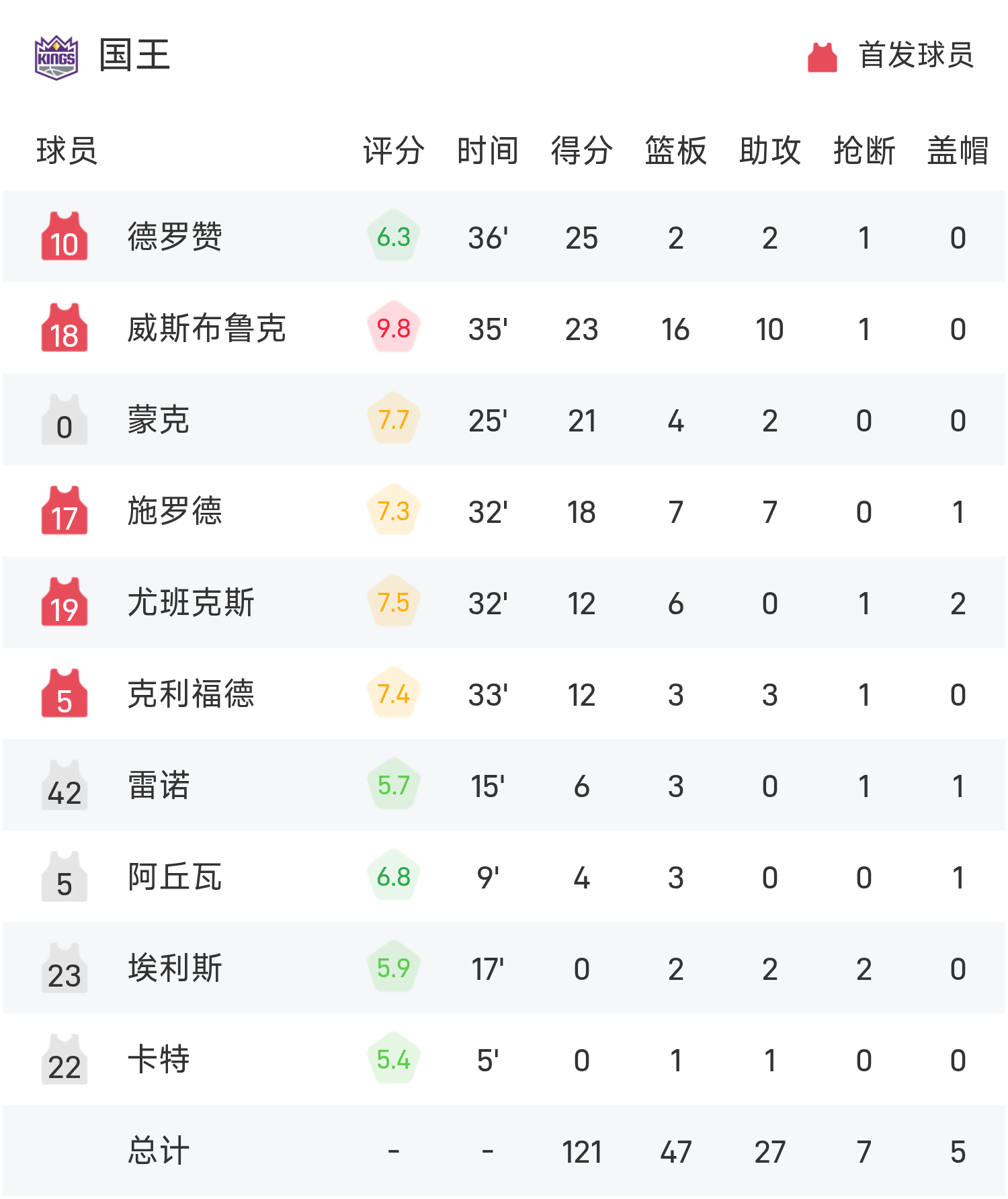 В конце игры «Кингз» победили «Уорриорз» со счетом 121–116.