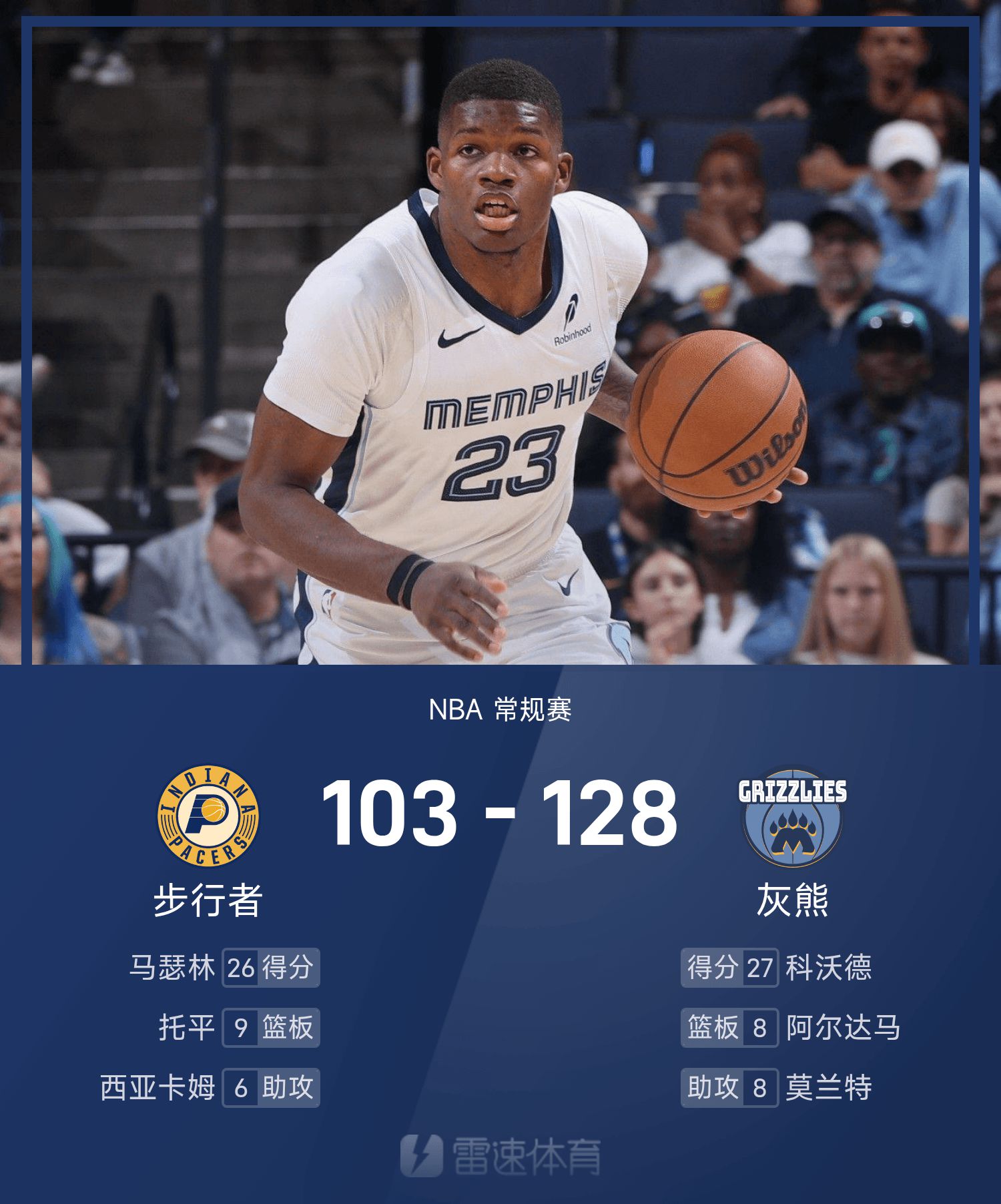 Гриззлис обыграли Пэйсерс со счетом 128–103