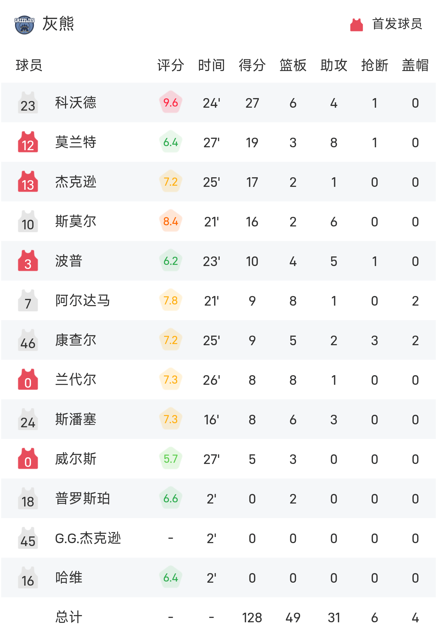 Кауард набрал рекордные для игры 27 очков, 6 подборов и 4 передачи, что привело «Гриззлис» к победе.