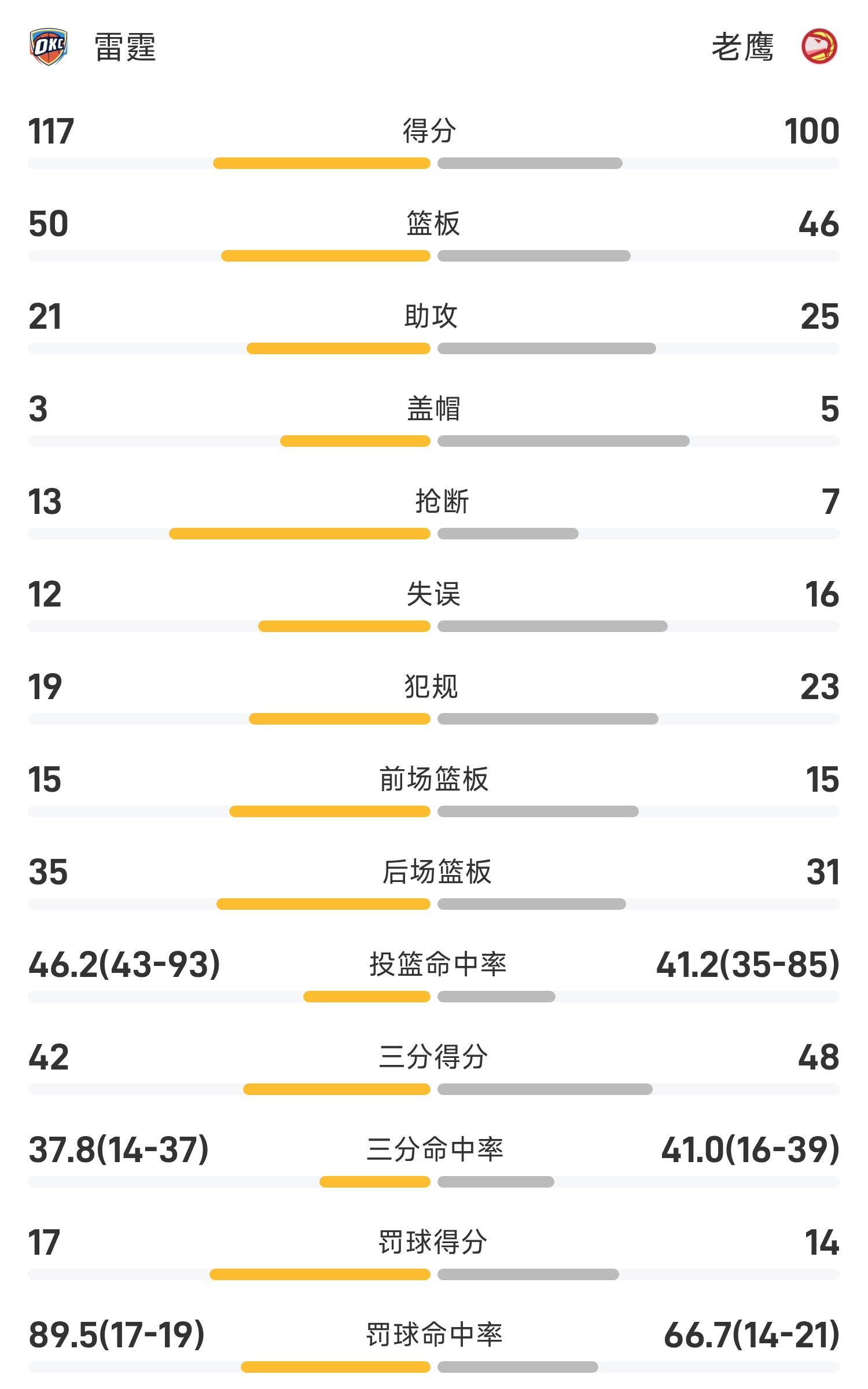 В конце игры «Иглз» проиграли «Тандер» со счетом 99–117.