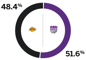 Дончичу нужно набрать 50 очков? ESPN прогнозировал процент побед: «Лейкерс» — 48,4%, «Кингз» — 51,6%.