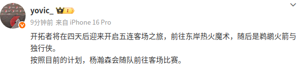 Исходный текст из социальных сетей: «Трэйл Блэйзерс» отправятся в путешествие из пяти игр к «Хит энд Мэджик» Восточного побережья, за которым последуют «Пеликанс», «Рокетс» и «Маверикс». Согласно текущему плану, Ян Хансен будет сопровождать команду на выездной игре».