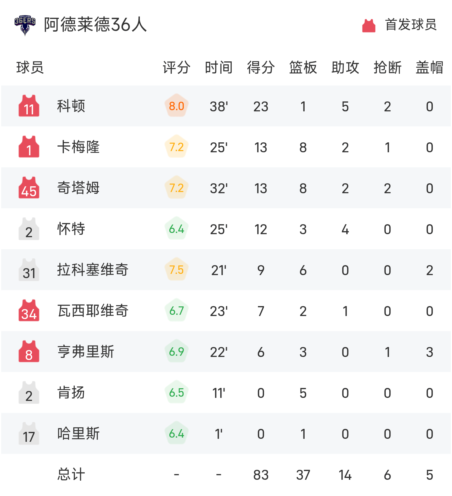 6686 Sports Ноябрь 06 Новости В регулярном сезоне НБЛ 25/26 новозеландские Разрушители встретились с Аделаидой 36ers. В конце матча новозеландские Разрушители проиграли Аделаиде 36ers 79–83. Коттон набрал 23 очка, 1 подбор и 5 передач, что привело команду к победе, а Брокингтон набрал рекордные для игры 25 очков, 3 подбора и 1 передачу.