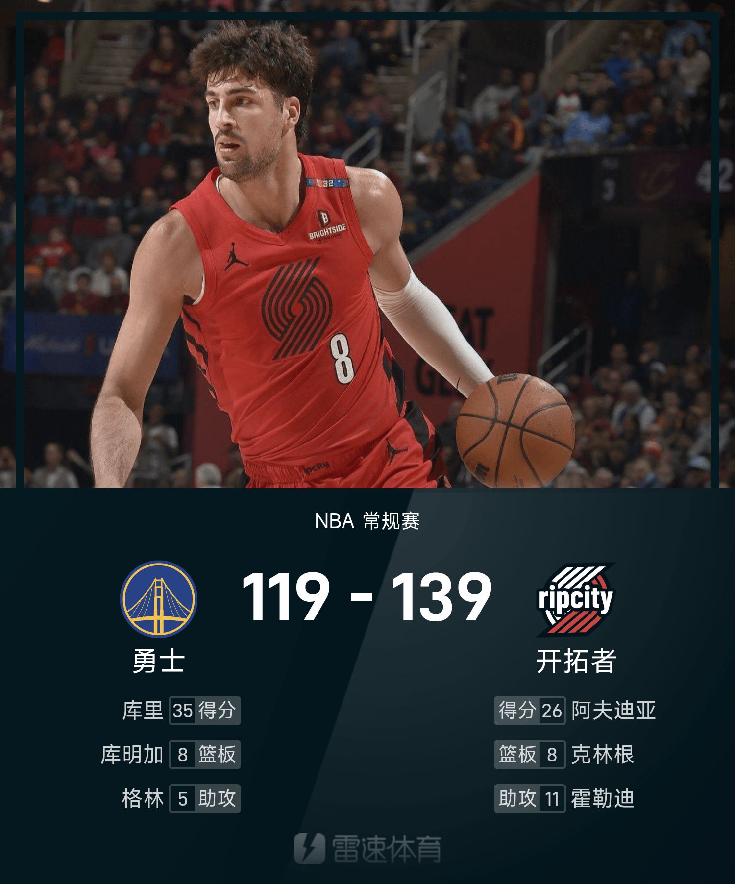 6686 Sports Новости от 25 октября В регулярном сезоне НБА 25/26 «Трэйл Блэйзерс» встретились с «Уорриорз». В конце игры «Трэйл Блэйзерс» победили «Уорриорз» со счетом 139–119. Авдия набрала 26 очков, 5 подборов и 6 передач и привела команду к победе. Карри набрал рекордные для игры 35 очков, 6 подборов и 3 передачи.