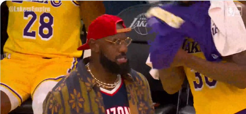 Хотя Леброн не смог играть из-за травмы, он всё равно общался и активно взаимодействовал с партнёрами по команде на площадке.