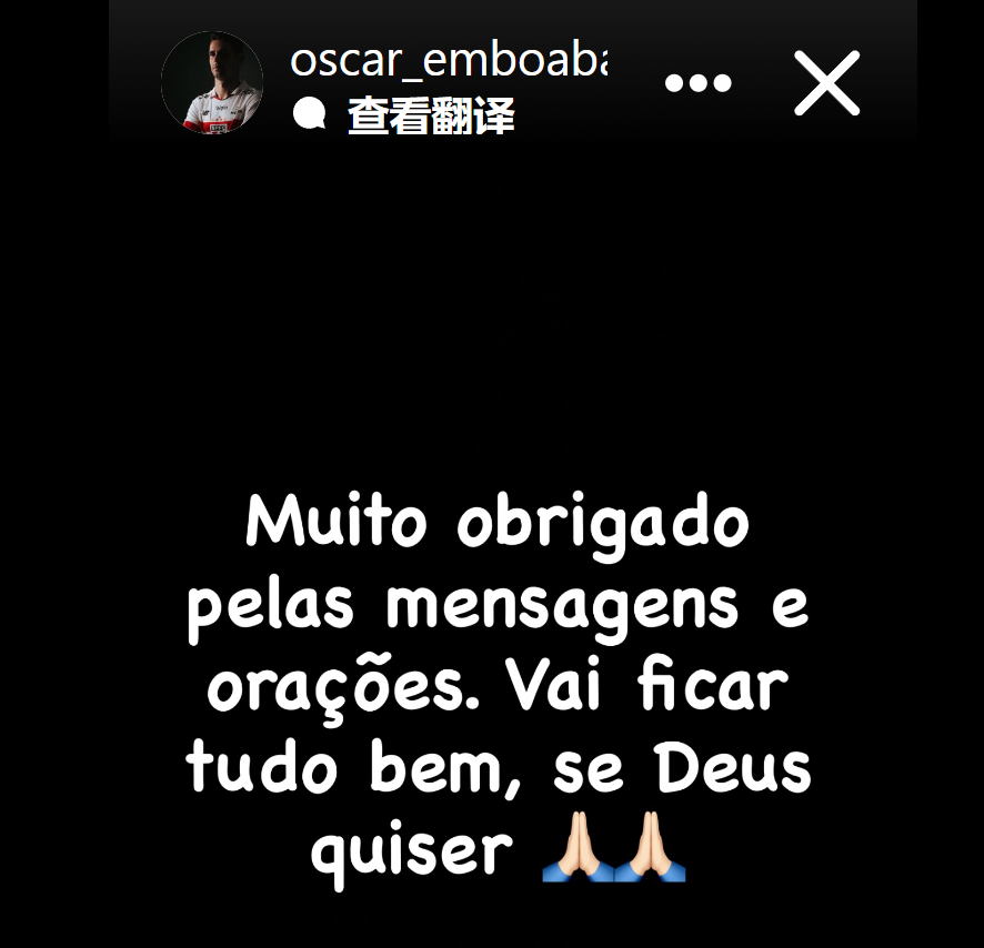 Теперь Оскар опубликовал обновление в социальных сетях: «Большое спасибо за все соболезнования и молитвы. Все будет хорошо. Да благословит вас Бог».