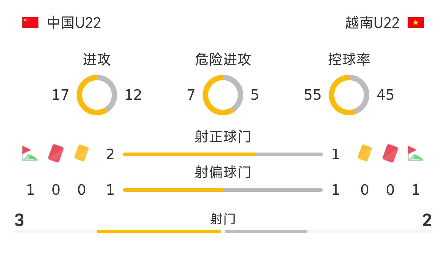 Вьетнам Стартовый состав U22: 23-Гао Вэньпин, 4-Нгуен Сяомин, 20-Ву Инцюань, 16-Нгуен Риминг, 3-Фань Лидэ, 12-Нгуен Чунбэй, 8-Нгуен Ваньронг, 11-Цюй Вэнькан, 18-Нгуен Гунфан, 22-Нгуен Цинсян, 9 - Нгуен Гоюе