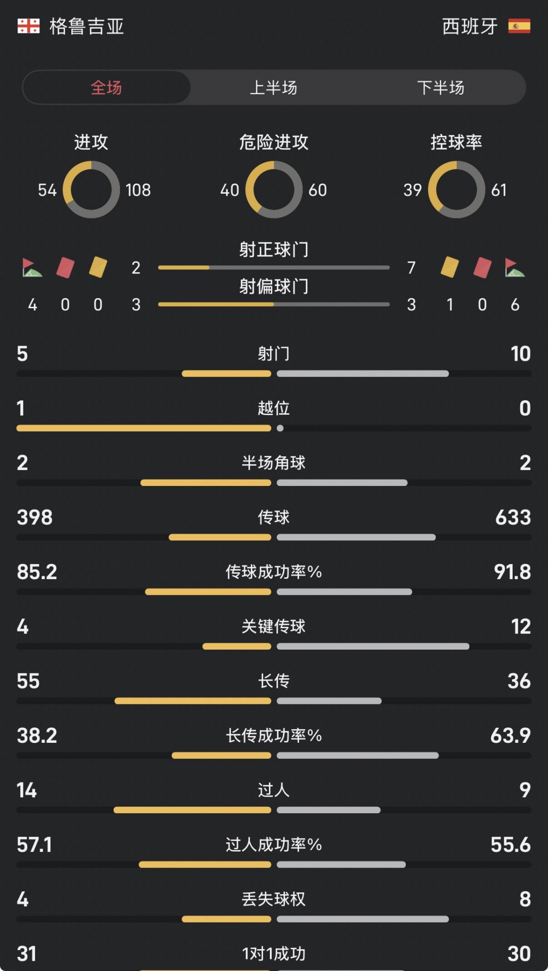 Испания – Грузия: коэффициент дриблинга 61–39, счет голов 10–5