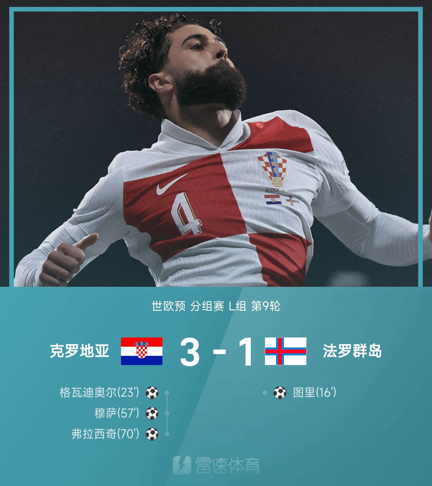 6686 Sports News от 15 ноября В 9-м туре группы L 26-го чемпионата мира по европейской квалификации Хорватия победила Фарерские острова со счетом 3–1. На протяжении всей игры Тури забил гол после отражения мяча и помог гостям Фарерских островов выйти вперед. Затем Гвадиол, Мусса и Влашич последовательно забили голы, завершив разворот. Модрича заменили на 61-й минуте, и Хорватия вышла на чемпионат мира.