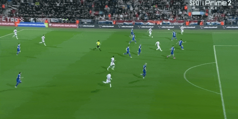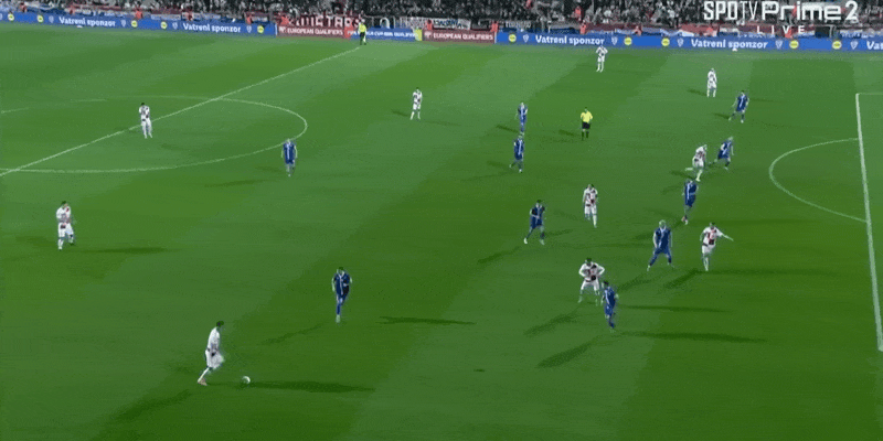 52' Станишич отдал пас в штрафную, и Крамарич головой отскочил немного мимо цели.