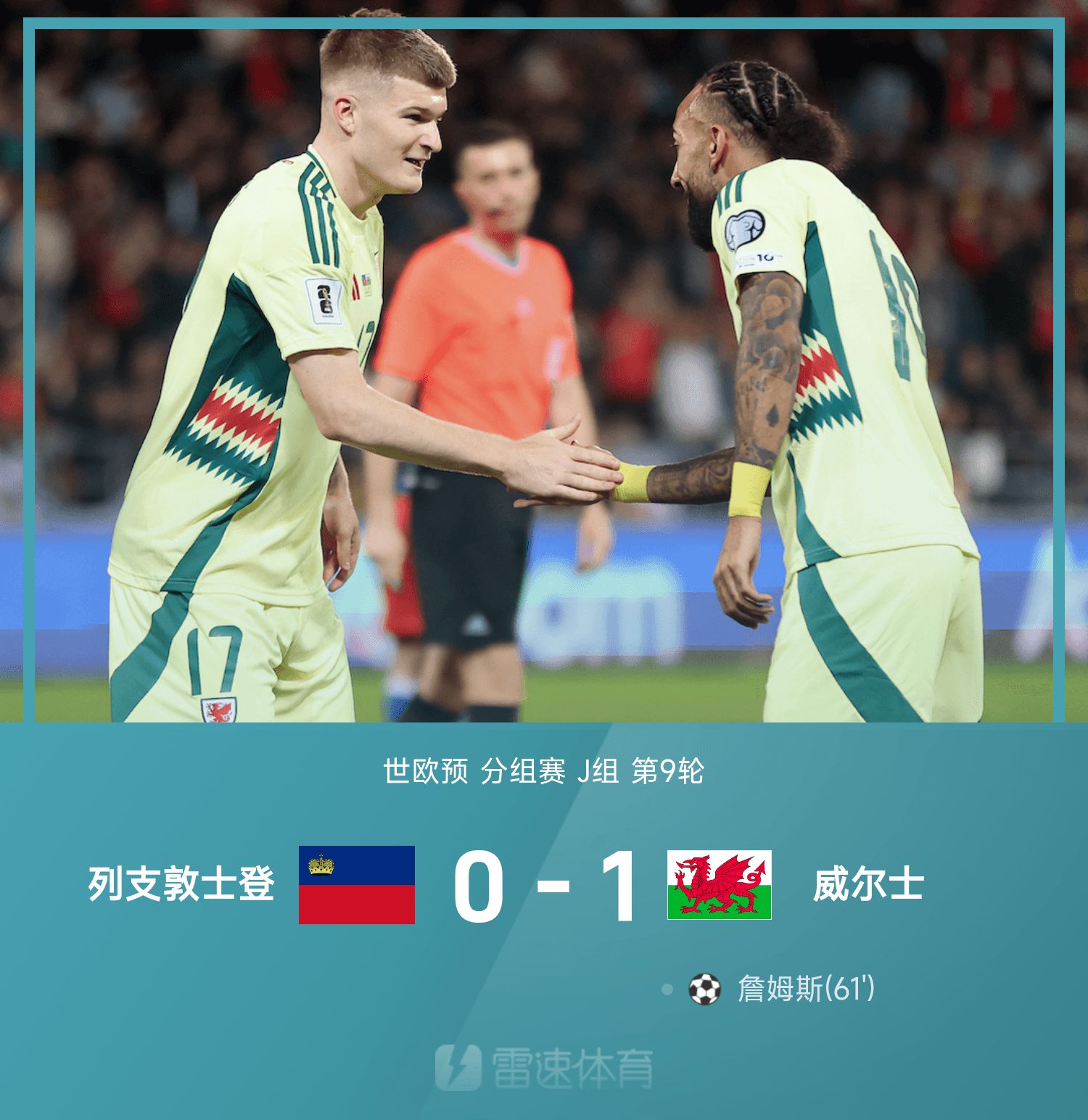 6686 Sports сообщила 16 ноября, что в 9-м туре группы J 26-го чемпионата мира по европейской квалификации Лихтенштейн дома встретился с Уэльсом. В первом тайме Бродхед забил гол, но вмешался судья, и видеоарбитр постановил, что гол не засчитан. На 61-й минуте второго тайма Джеймс забил единственный гол в игре, закрепивший игру. В итоге Уэльс с небольшим перевесом победил Лихтенштейн со счетом 1:0, и ожидается, что Уэльс выйдет на групповой этап чемпионата мира.