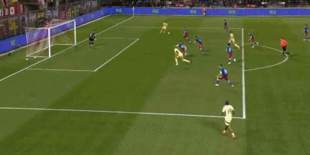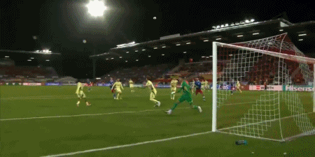 34' Ампаду установил зенитку в верхней части дуги для атаки ворот, и мяч полетел выше ворот. перекладину и вылетел за пределы трибун