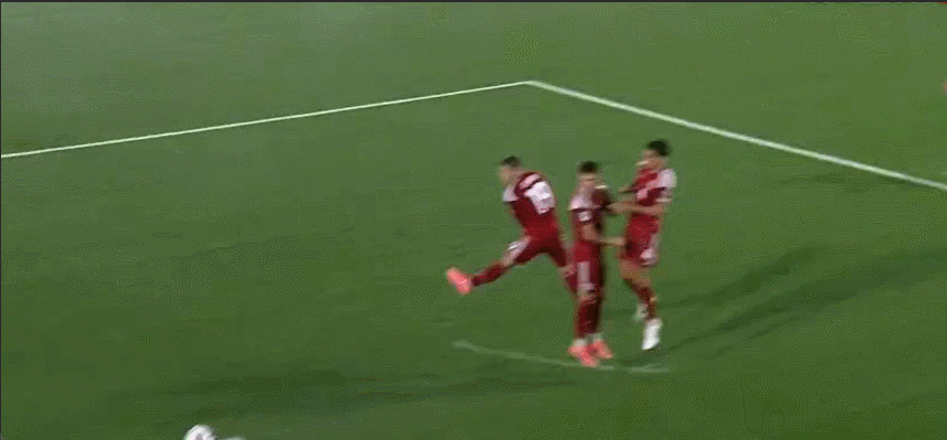 45+4’ Аджич исполнил штрафной удар и правой ногой поразил ворота. Мяч пересек перекладину и вылетел за лицевую линию.