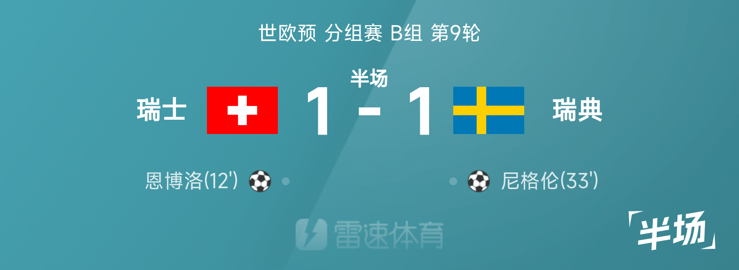 Мировой европейский предварительный перерыв: Эмболо забивает, Нюгрен выравнивает счет, Швейцария временно - Швеция 1:1