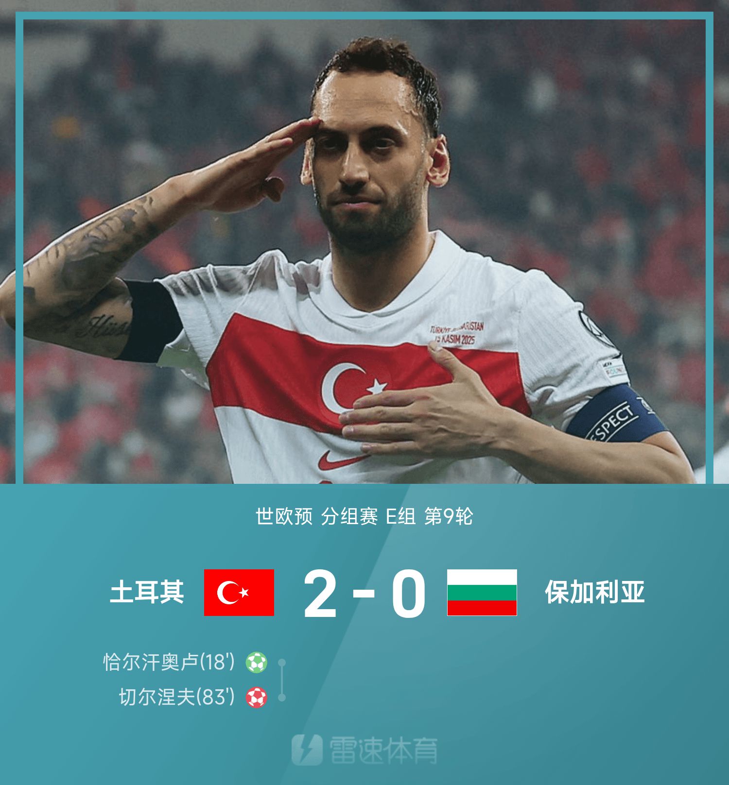 6686 Sports сообщил 16 ноября, что в 9-м туре группы E 26-го чемпионата мира по европейской квалификации Турция победила Болгарию со счетом 2:0. В первой половине игры Чарханоглу реализовал пенальти, а во второй половине Чернев забил автогол, что помогло «Тюркие» победить соперника.