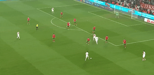 56' Айдын сделал пас справа в штрафную, а Актукоглу головой пробил над головой. перекладина