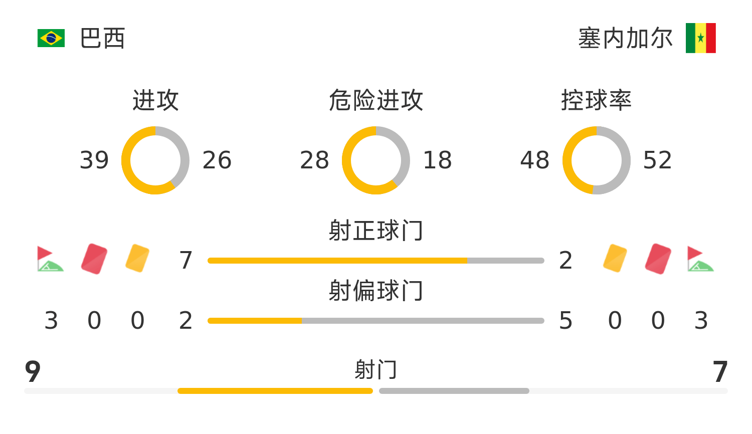 Стартовый состав Бразилии: 23 – Эдерсон, 6 – Сандро, 4 – Маркиньос, 2 – Милитау, 3 – Габриэль, 5 – Каземиро, 8 – Гимарайнш, 7 – Винисиус, 21 – Кунья, 10 – Родриго, 20– Эстеван