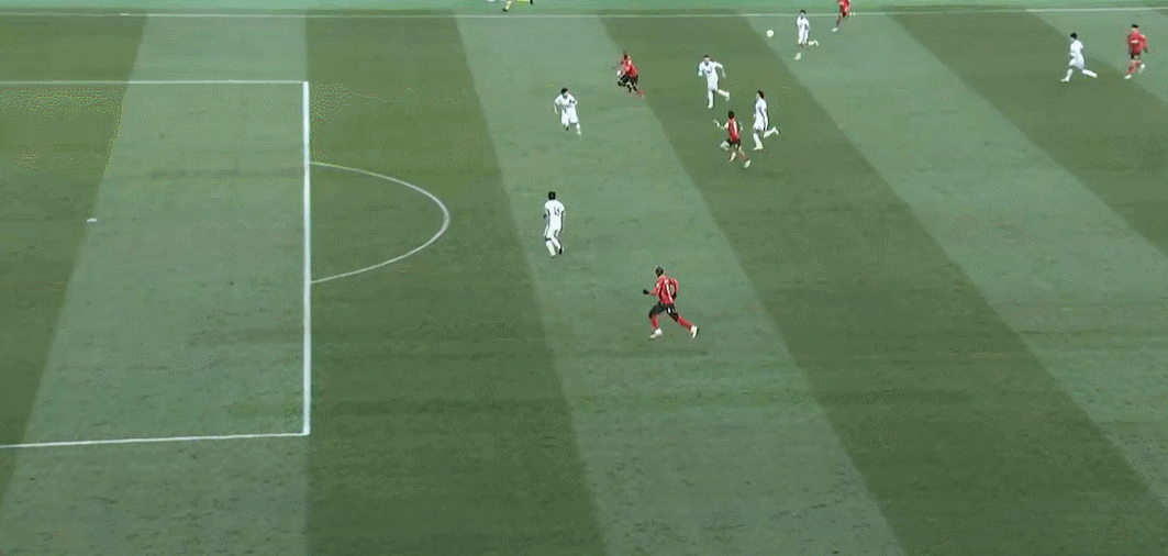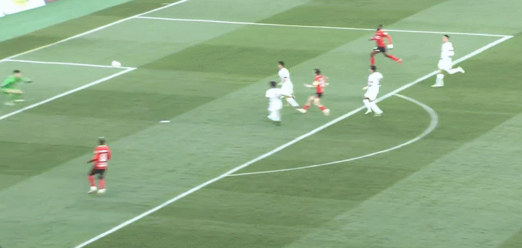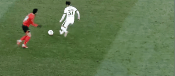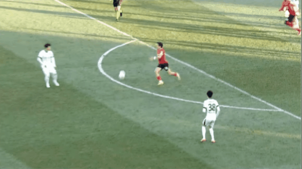 39’ Инь получил мяч перед воротами и тут же нанес удар правой ногой. Мяч проскользнул мимо ворот и вылетел за лицевую линию