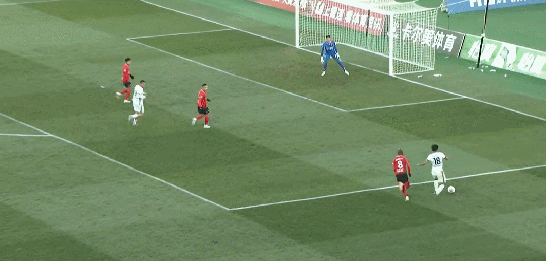 8' Бан Бэньию выхватил мяч за пределы трехсекундной зоны, оторвался от защитника и пробил с внешней стороны левой ногой. Ли Гуаньси заблокировал мяч