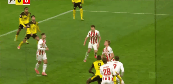 10' Мяч дортмундцев вызвал хаос, Антон с близкого расстояния протолкнул в дальний угол и был заблокирован с лицевой линии.