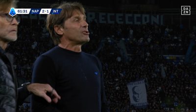 Реакция Конте была столь же яростной и быстрой: он выругался крайне оскорбительным ругательством в адрес Лаутаро (согласно анализу чтения по губам, его подозревали в том, что это «ты ублюдок»). Его слова были настолько яростными, что рефери даже сделал устное предупреждение, и ему показали карточку с предупреждением.