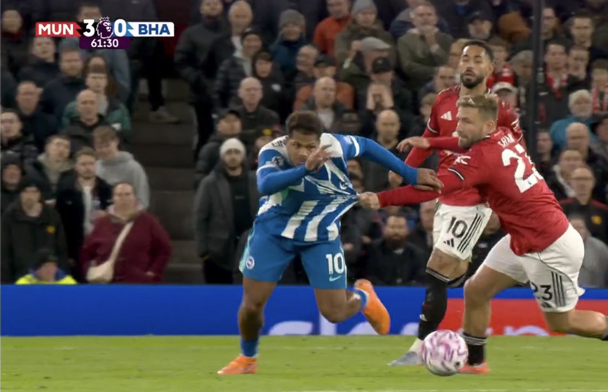 6686 Sports, 26 октября, в 9-м туре Премьер-лиги, на 61-й минуте второго тайма домашнего матча хозяев поля «Манчестер Юнайтед» с «Брайтоном» Люк Шоу повалил нападающего «Брайтона» Рютта на землю, находясь в охранении. Затем «Манчестер Юнайтед» контратаковал и забил, ведя со счетом 3–0. Рефери постановил, что Энтони Тейлор отказался вызывать Люка Шоу за нарушение защиты.