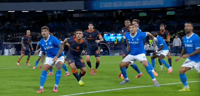 15’ Лаутаро имел отличную возможность в трехсекундной зоне, и его удар отразил голкипер Неаполя