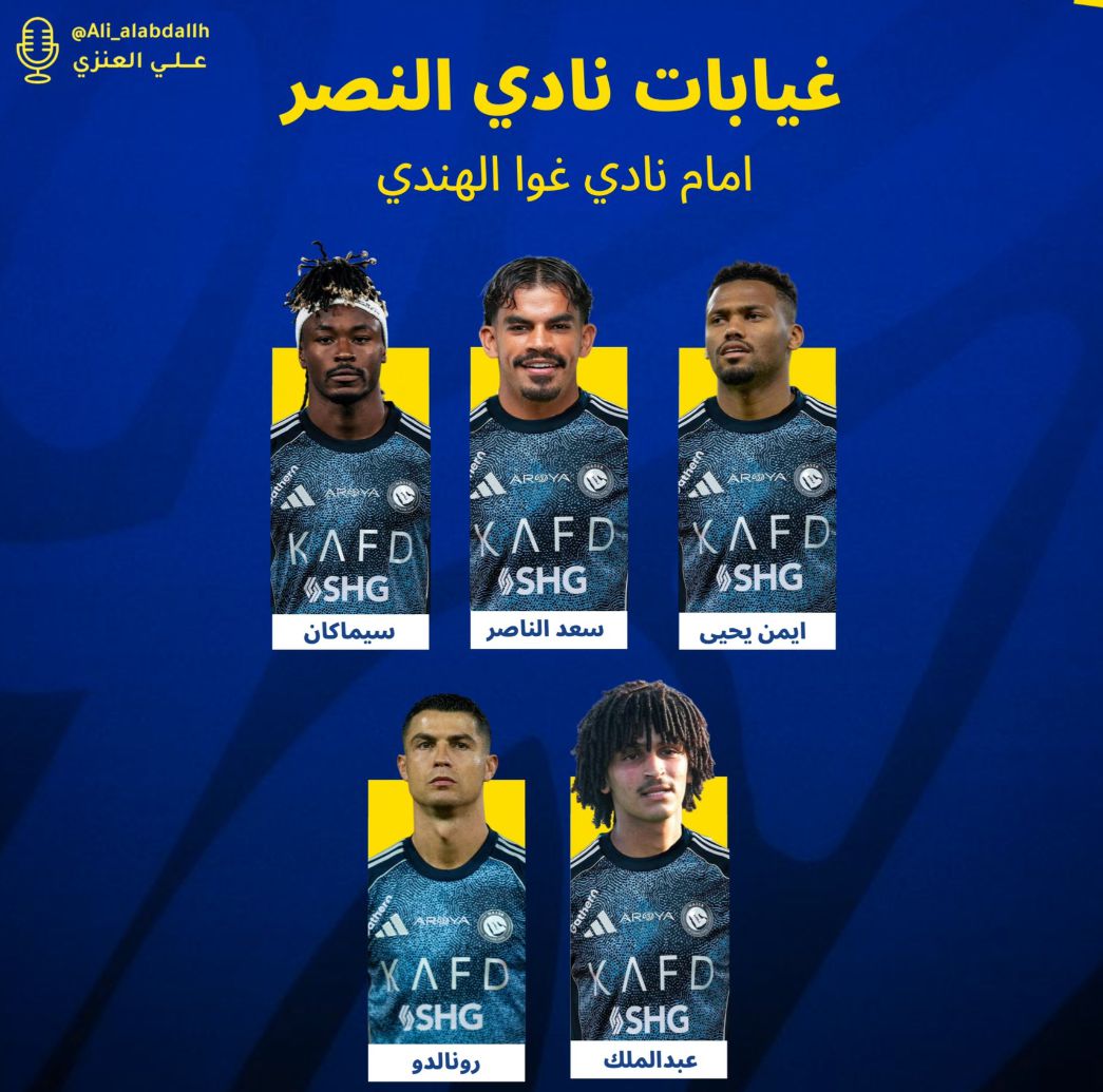 6686 Новости спорта от 6 ноября Согласно репортажу корреспондента команды Эр-Рияда Алабдалла, в список соревнований второго уровня Лиги чемпионов АФК с Гоа вошли 8 легионеров, а Роналду, Симакан и другие отсутствуют.