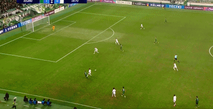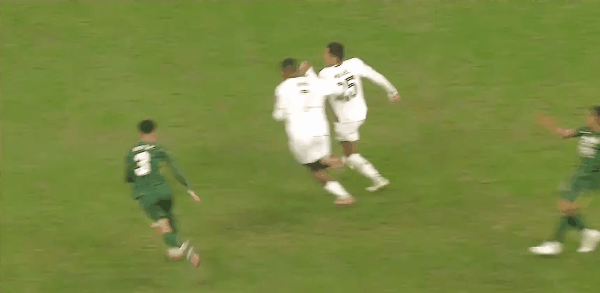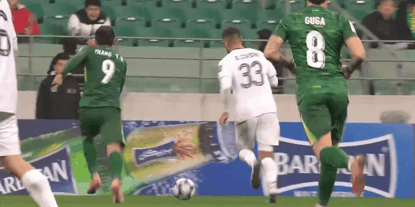 45+1' Чжан Цзяньчжи допустил ошибку и сделал подарок, а защитник Гоаня вернулся в защиту и выбил мяч, чтобы устранить опасность