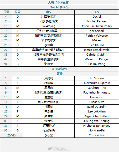 В 20:15 вечера 6 ноября по пекинскому времени в четвертом туре группового этапа второго дивизиона Лиги чемпионов АФК команда хозяев поля «Пекин Гоань» вновь встретилась с командой Гонконгской Суперлиги «Тай По». Перед игрой был объявлен стартовый состав.