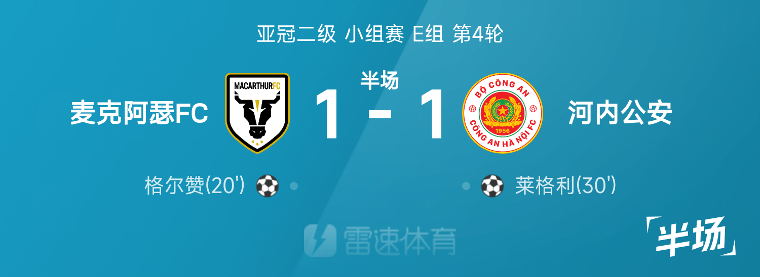 Лига чемпионов АФК, уровень 2 Перерыв: Герзан забивает, Легли выравнивает счет, Макартур - Ханой 1:1
