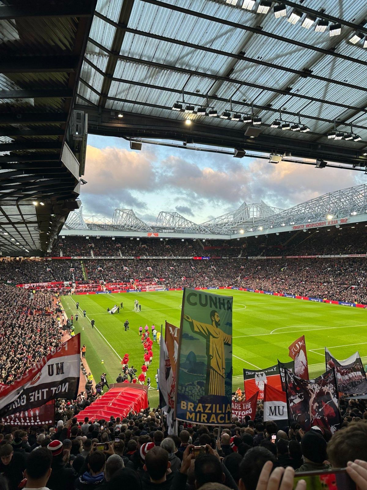 Бразилец Кунья, перешедший в клуб этим летом, также забил в этой игре свой первый гол за «Манчестер Юнайтед». Перед игрой болельщик был сфотографирован с флагом с напечатанной на нем версией «статуи Иисуса» Кунья.