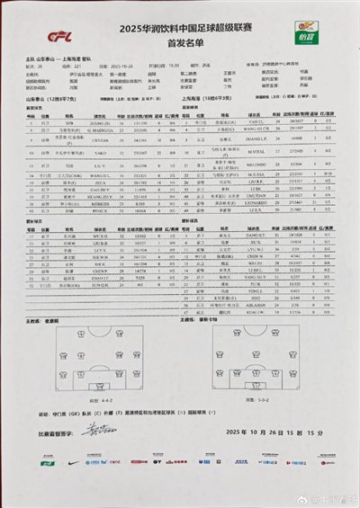 6686 Sports 26 октября Блогер Bull Eye Watch сообщил, что Шаньдун Тайшань временно изменил стартовый состав на игру против Хайгана. Луис Лопес был уволен, а в стартовом составе стал Пэн Сяо.