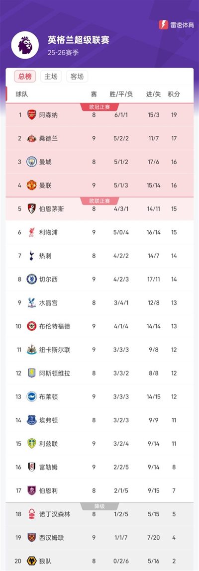 6686 Sports, 26 октября Сегодня рано утром по пекинскому времени завершился 9-й тур сезона Премьер-лиги 25/26, состоявший из 5 игр, и соответственно изменился рейтинг команды.