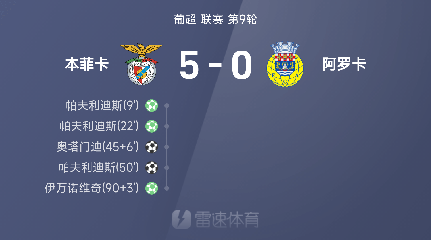 6686 Sports 26 октября В 9-м туре португальской Суперлиги 25/26 «Бенфика» обыграла «Ароку» со счетом 5–0. На протяжении всей игры Павлидис с божественной помощью оформил хет-трик, а отличились Иванович и Отаменди.