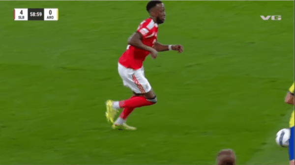 Предупреждающий знак на 59-й минуте – нарушение Люка Баджо ("Бенфика")